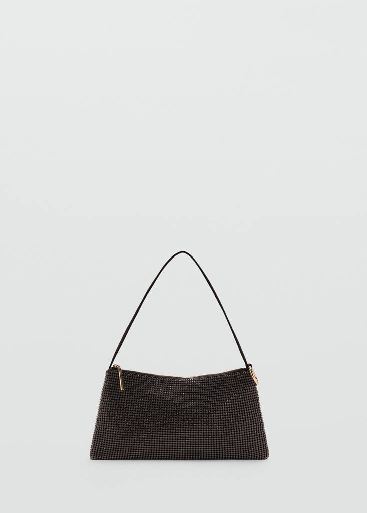 Small size. Strass design. Handle. Decorative ring. Zip closure. Inner lining