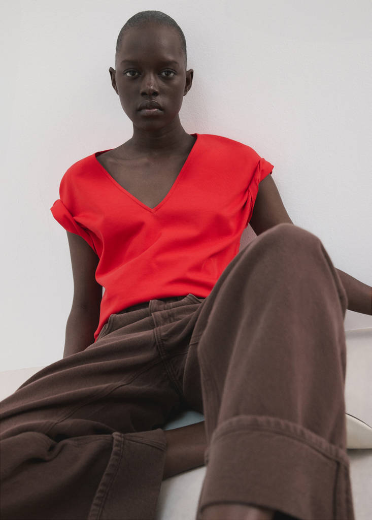 New NowV-neck cotton T-shirtCurrent price [₩ 29,900 ]₩ 29,900Select a colourRedSelect your sizeXXSDelivery in 10 to 15 working daysXSSMLXLXXLDelivery in 10 to 15 working days1XLDelivery in 10 to 15 working days2XLNot available. I want it!3XLDelivery in 10 to 15 working days4XLNot available. I want it!DimensionsAddAdd to your wishlistSee lookConvenient home delivery100% cotton fabric. V-neck. Short sleeves. No Fastening. Available PlusDetails, composition and careStore availability