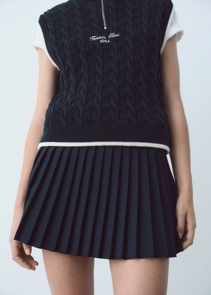 얇은 니트. 짧은 디자인. 플리츠 디자인. A라인 디자인. 중간 허리. 측면 지퍼 잠금. 고도 컬렉션