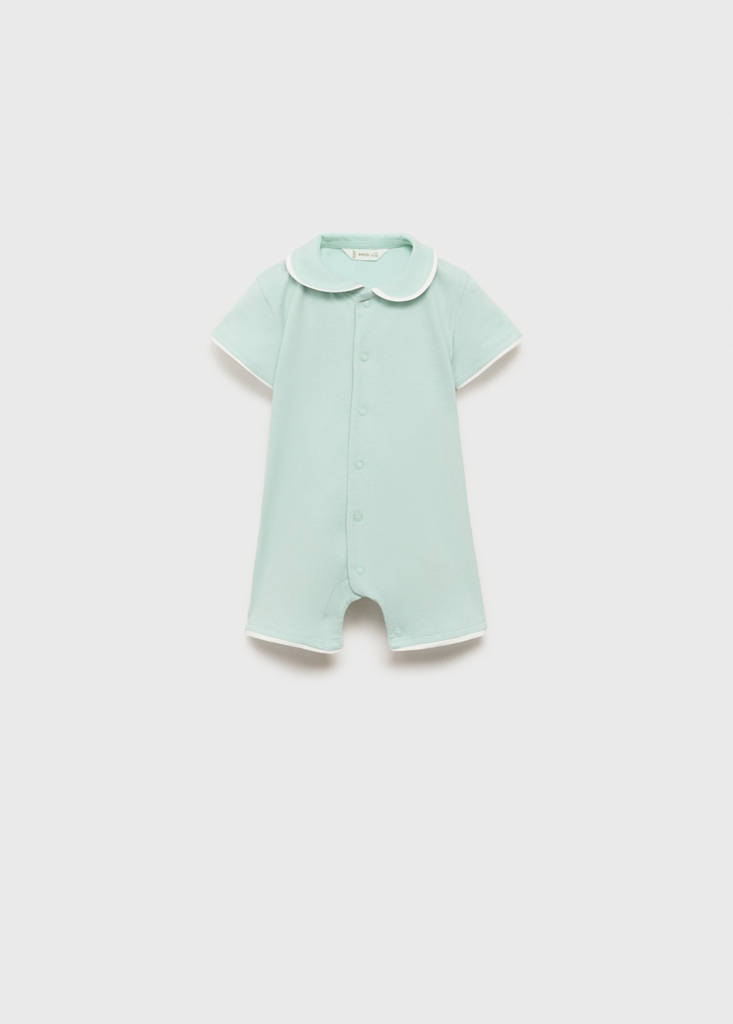 نسيج قطني. تصميم قصير. تصميم مستقيم. ياقة بابيدول. أكمام قصيرة. إغلاق أمامي بأزرار. إغلاق بأزرار كبس. أطراف مغايرة