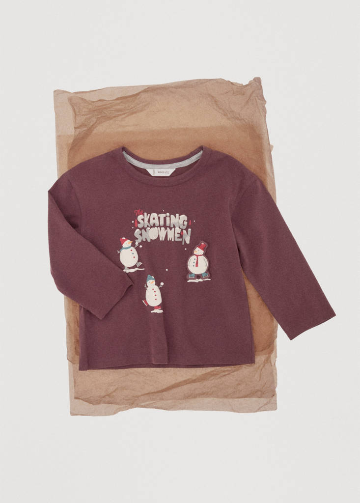 نسيج 100% قطن. تصميم مستقيم. تصميم مطبوع. رقع تزيينية. ياقة دائرية. أكمام طويلة. مجموعة عيد الميلاد