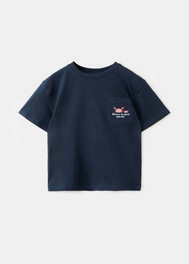 نسيج 100% قطن. تصميم مستقيم. ياقة دائرية. أكمام قصيرة. بلوزة محبوكة بسحّاب. جيب مطبوع. رسم مطبوع على الجزء الخلفي