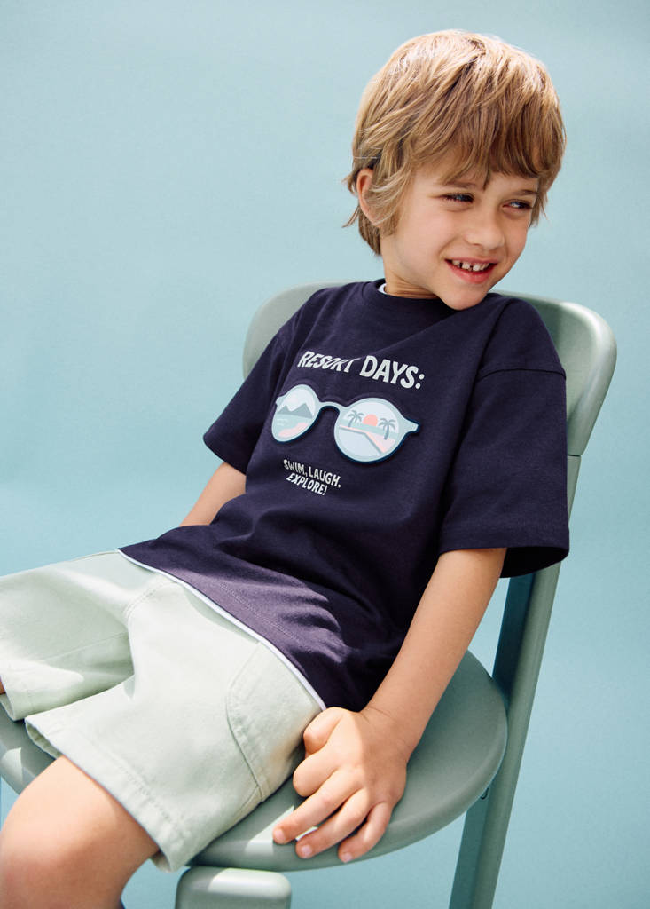 نسيج 100% قطن. تصميم مستقيم. ياقة دائرية. كم قصير. رسم مطبوع على الصدر