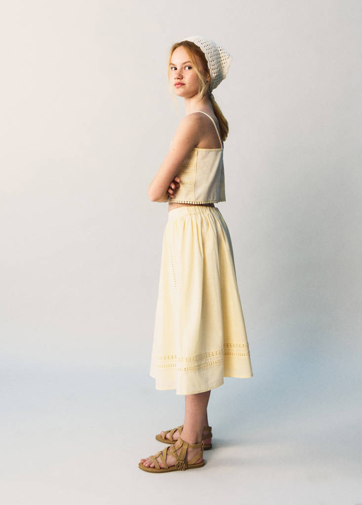نسيج 100% قطن. تصميم إيفازي. تصميم ميدي. خصر مطاطي. تفاصيل مطرزة. Total look