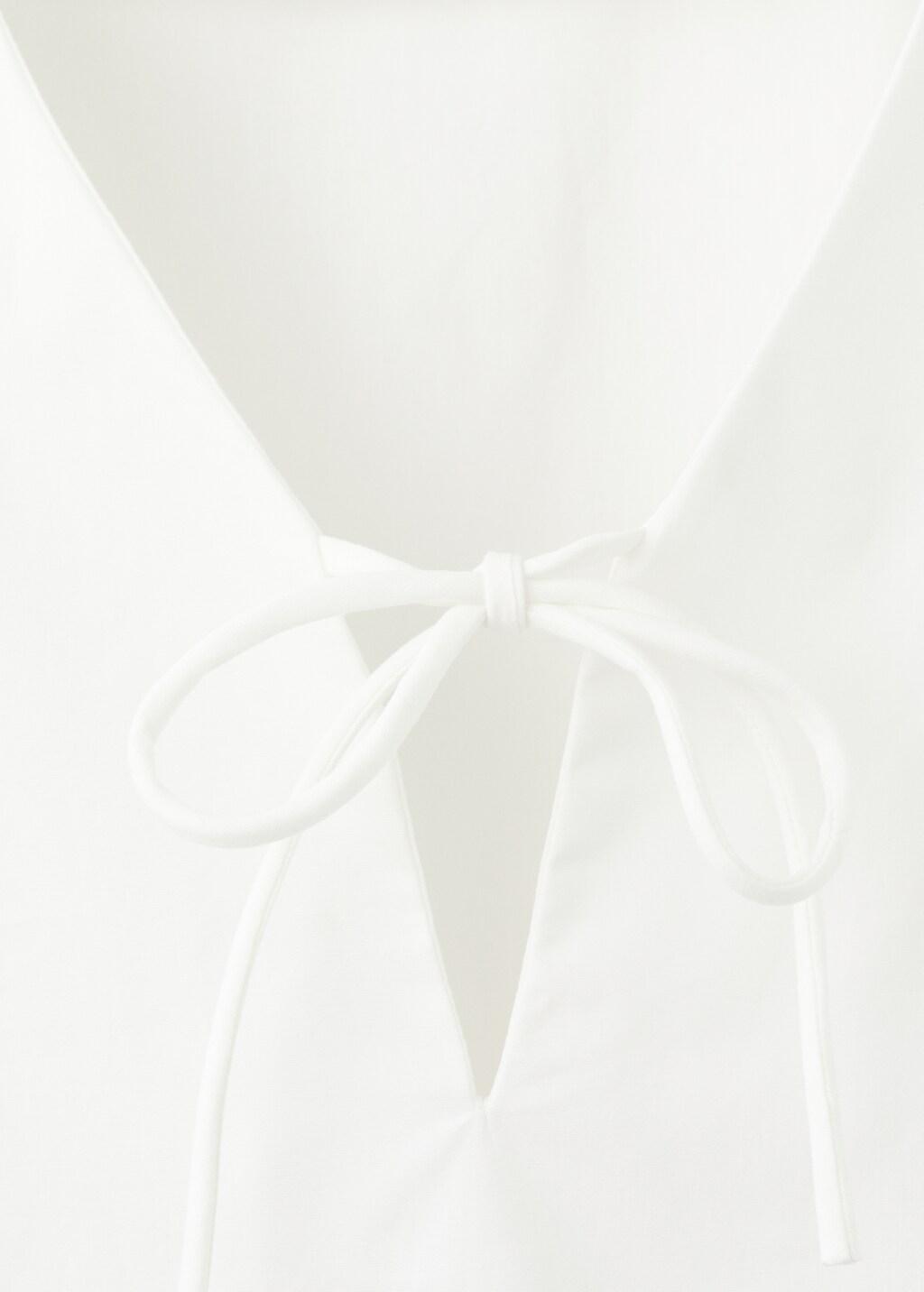نسيج 100% قطن. تصميم مستقيم. ياقة على شكل V بفيونكة. أكمام طويلة. أسورة مرنة.