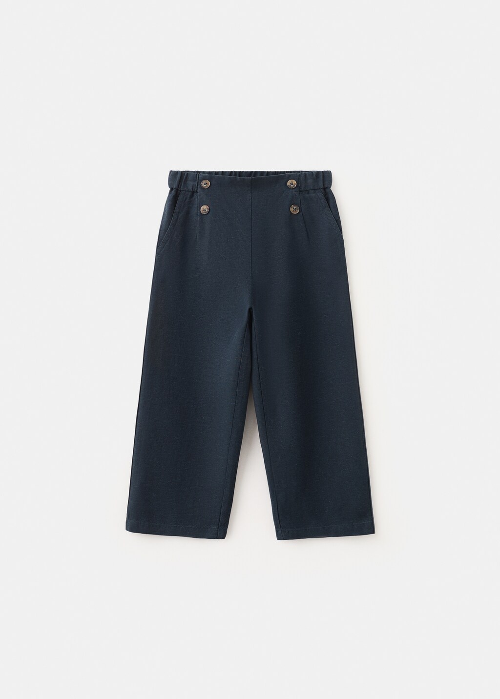 Linen and lyocell blend fabric. Straight design. Long design. Elasticated waist. Two side pockets. Double-breasted detail.