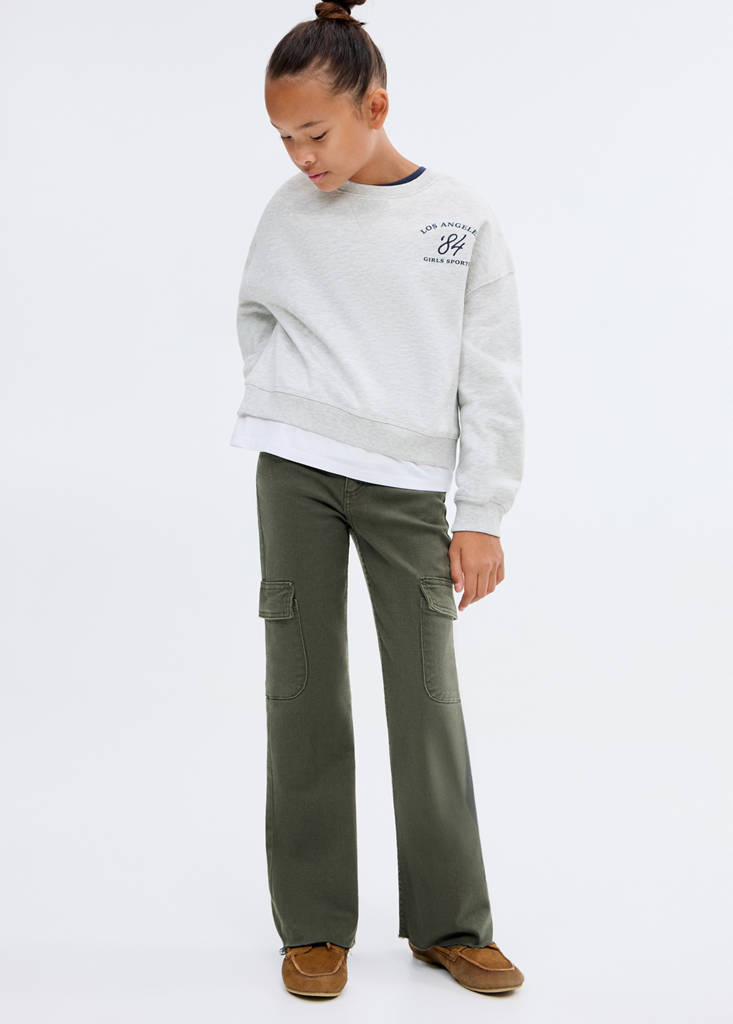 Хлопковая ткань. Эластичная ткань. Длинный дизайн. Фасон карго. Стиль клёш. Посадка на талии. Шлёвки для ремня. Застежка на пуговицу и молнию. Два боковых кармана. Два кармана в грузовом стиле. Необработанный низ брюк.