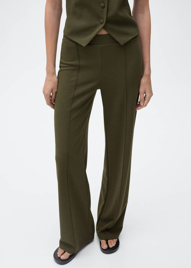 Трикотаж. Длинный дизайн. Прямой крой. Средняя посадка. Талия с эластичной резинкой. Декоративные строчки. Без застежки. Total look. Образы для офиса