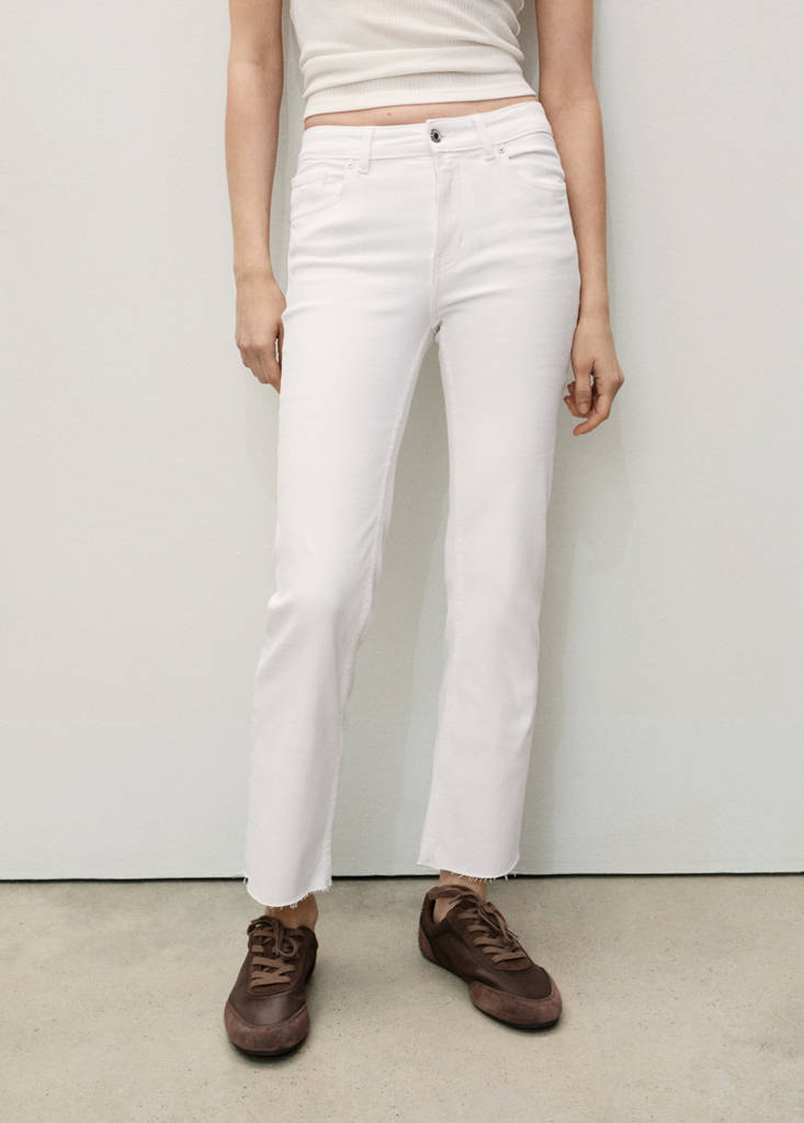 Хлопковая ткань в стиле джинсовой ткани. В состав входит переработанный хлопок. Эластичная ткань. Стиль клёш. Кроп-дизайн. Высокая посадка. Шлёвки. Пять карманов. Передняя застежка на молнию и пуговицу. Необработанная линия низа с торчащими нитками. Доступно Plus. Внутренняя длина 65 см