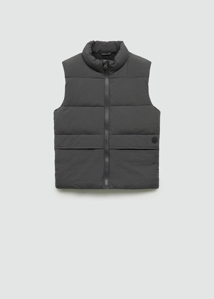 Коллекция "Назад в школу". Стеганый дизайн. Прямой крой. Высокий воротник. Два передних кармана. Без рукавов. Застежка-молния