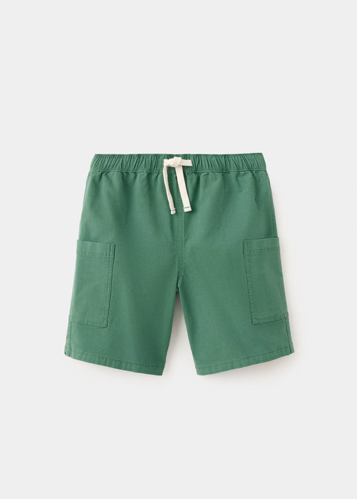 Хлопковая ткань. Прямой крой. Короткая длина. Эластичная талия с регулируемым шнурком. Два кармана в грузовом стиле.