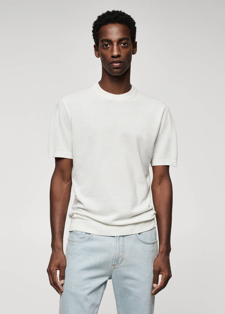 Regular fit. Тонкий трикотаж. Структурная ткань. В состав входит экологичный хлопок. Круглый вырез горловины. Короткие рукава. Эластичные края. Рост модели: 187 см, размер: М. Коллекция базовых вещей