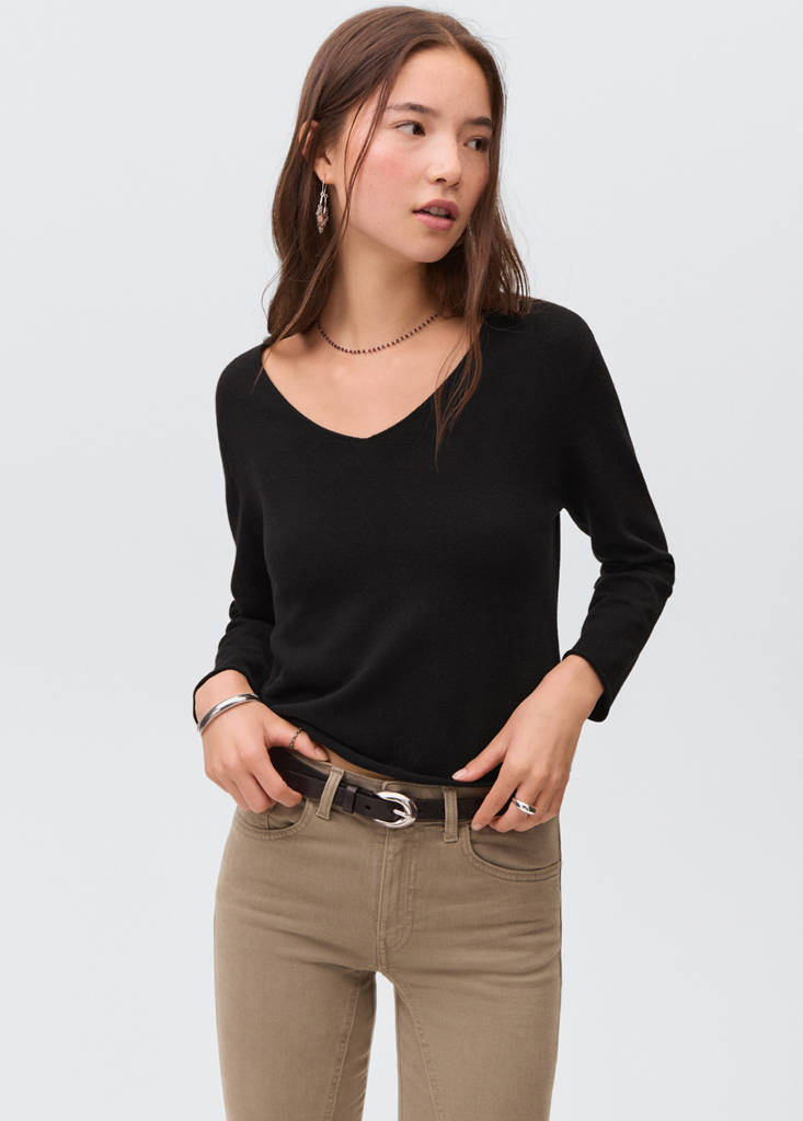 Пуловер из трикотажаТекущая цена [KZT 19 990,00 ]KZT 19 990,00Выберите цветУгольно-серыйВыберите свой размерXXSXSSMLТаблица размеровДобавить в ФаворитыОцените образБесплатная доставка в магазинПроверить наличие в магазинеОписаниеХлопковая ткань. Трикотаж. Однотонный дизайн. V-образный вырез. Длинные рукава.ПодробнееПоделиться