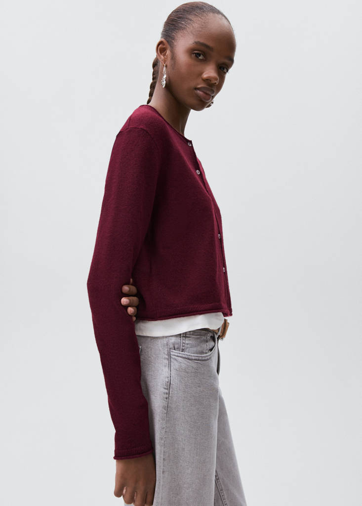 Вязаный кардиган с пуговицамиТекущая цена [KZT 25 990,00 ]KZT 25 990,00Выберите цветБургундияВыберите свой размерXXSXSSMLТаблица размеровДобавить в ФаворитыОцените образБесплатная доставка в магазинПроверить наличие в магазинеОписаниеТрикотаж. Прямой крой. Круглый вырез. Длинные рукава. Передняя застежка на пуговицы.ПодробнееПоделиться