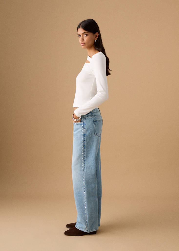 Ткань 100% хлопок. Длинный дизайн. Straight-fit. Посадка на талии Regular Waist. Фантазия: Заклепки. Шлёвки для ремня. Два боковых кармана. Два накладных кармана сзади.