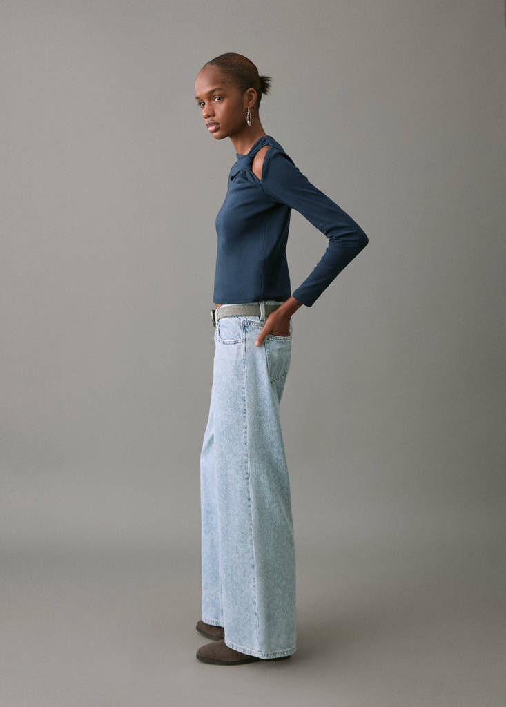 Ткань 100% хлопок. Узор пейсли. Дизайн wide leg. Посадка на талии. Шлёвки для ремня. Застежка на пуговицу и молнию. Пять карманов.