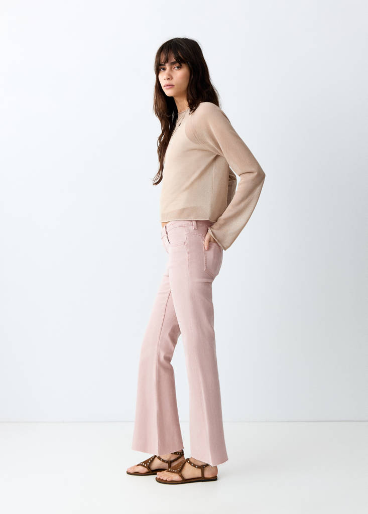 Длинный Длинный. Посадка на талии Regular Waist. Средняя плоская структура. Хлопковая ткань. Эластичная ткань. Кроп-дизайн. Стиль клёш. Средняя посадка. Шлёвки для ремня. Застежка на пуговицу и молнию. Два боковых кармана. Два накладных кармана сзади. Необработанный низ брюк.