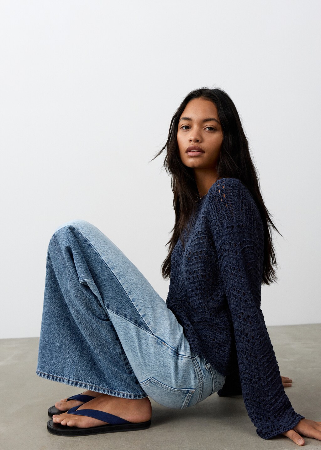 Двухцветные джинсы с широкими штанинами