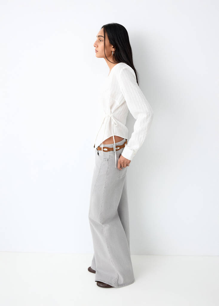 Джинсы с широкими штанинами и декоративными швами