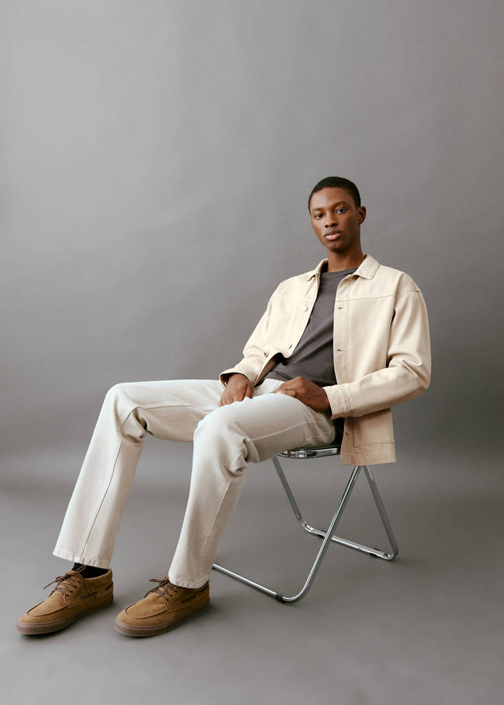 Ткань 100% хлопок. Эффект денима. Прямой крой. Рубашечный воротник. Длинные рукава с пуговицами на манжетах. Передняя застежка на пуговицы. Два накладных кармана спереди.