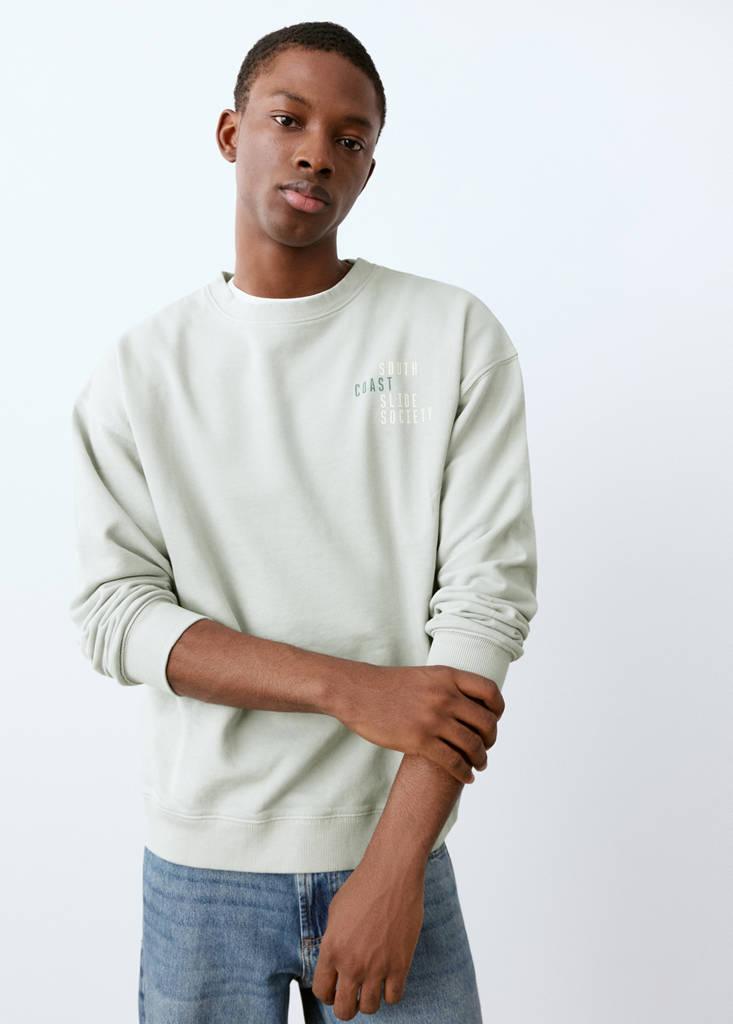 Ткань 100% хлопок. Прямой крой. Круглый вырез. Длинные рукава. Воротник, манжеты и низ в рубчик. Сбоку принтованный текст.