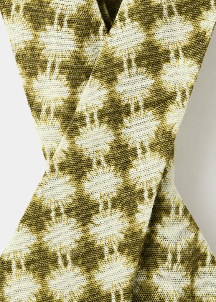 Ткань смесь хлопка и льна. Приталенный дизайн. Кроп-дизайн. Дизайн с принтом. Воротник халтер. Без рукавов. Без застёжки. Открытая спина.