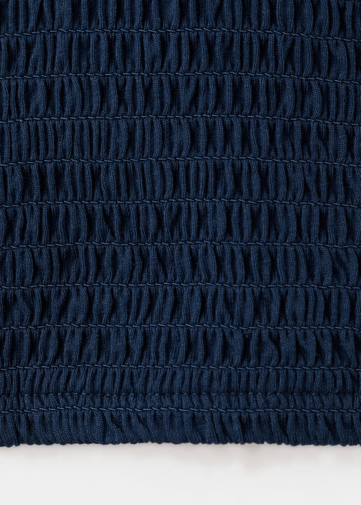 Ткань 100% хлопок. Приталенный дизайн. V-образный вырез. Без рукавов. Широкие бретели. Сборка на талии. Без застёжки.
