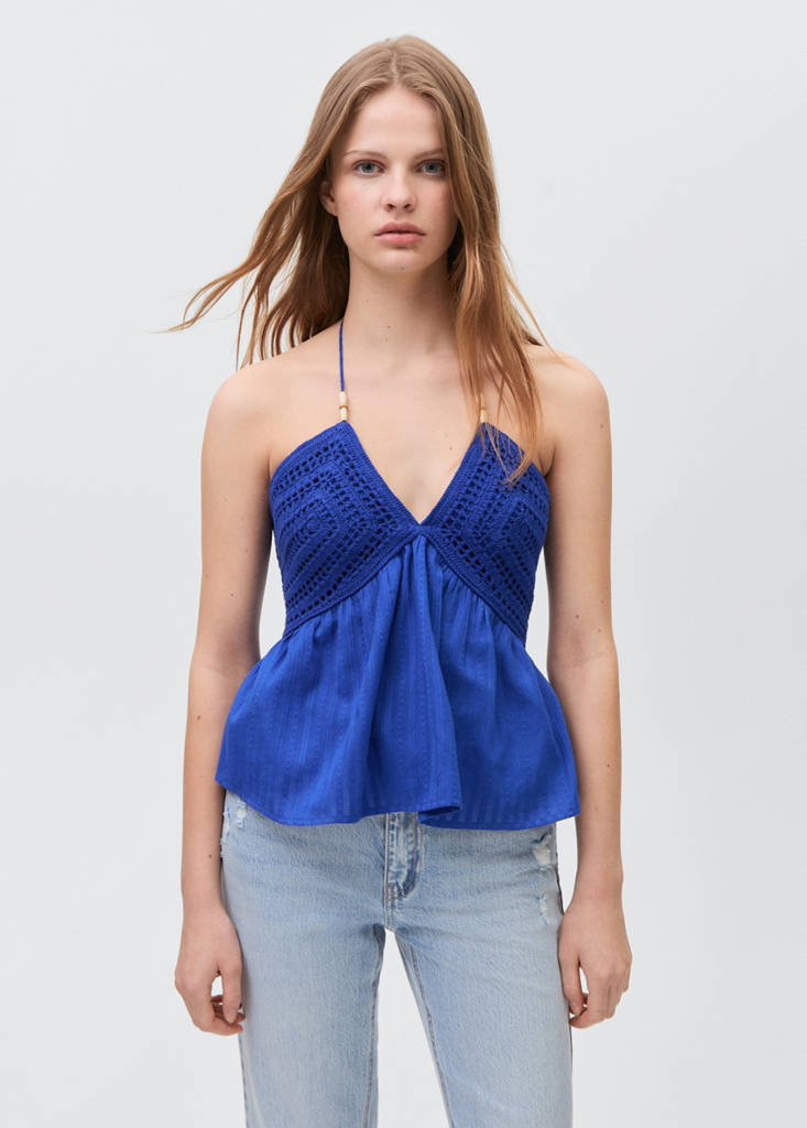 Топ кроше с бусинамиТекущая цена [KZT 19 990,00 ]KZT 19 990,00Выберите цветСИНИЙ ЭЛЕКТРИКВыберите свой размерXXSXSSMLДобавить в ФаворитыОцените образБесплатная доставка в магазинХлопковая ткань. Ажурная ткань. V-образный вырез. Тонкие бретели с завязками. Воротник-бант. Изделие украшено бусинками. Открытая спинаПодробнее, состав и уходНаличие в магазине