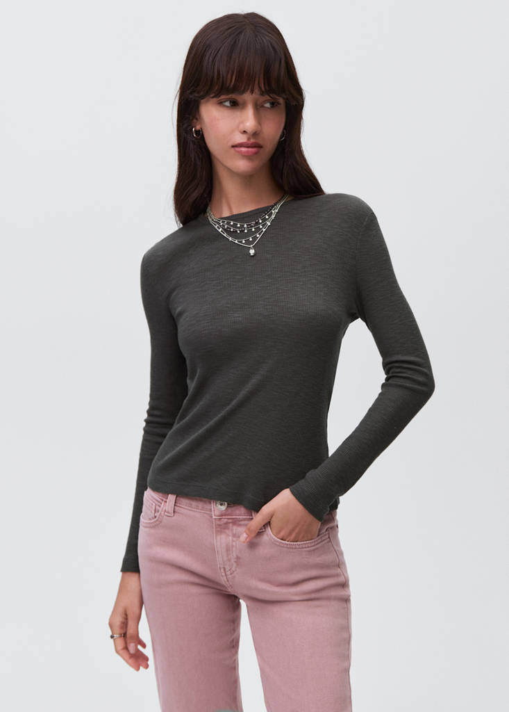 Лонгслив из трикотажаТекущая цена [KZT 10 990,00 ]KZT 10 990,00Выберите цветУгольно-серыйВыберите свой размерXXSXSSMLТаблица размеровДобавить в ФаворитыОцените образБесплатная доставка в магазинПроверить наличие в магазинеОписаниеХлопковая ткань. Модал. Трикотаж. Однотонный дизайн. Прямой крой. Круглый вырез. Длинные рукава.ПодробнееПоделиться
