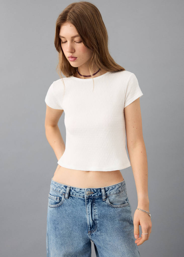 Футболка из трикотажа в рубчикТекущая цена [KZT 10 990,00 ]KZT 10 990,00Выберите цветГрязно-белыйИзменение размеров - См. гид по размерамВыберите свой размерXXSXSSMLТаблица размеровДобавить в ФаворитыОцените образБесплатная доставка в магазинПроверить наличие в магазинеОписаниеТкань 100% хлопок. Прямой крой. Трикотаж в рубчик. Круглый вырез. Короткий рукав.ПодробнееПоделиться