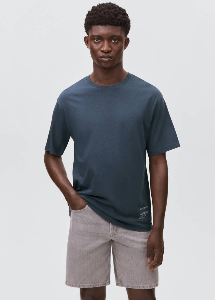 Ткань 100% хлопок. Короткий дизайн. Дизайн с принтом. Круглый вырез. Короткий рукав. Спереди принт. Текст на задней части