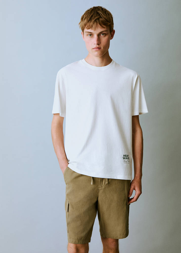 Ткань 100% хлопок. Прямой крой. Короткий дизайн. Круглый вырез. Короткий рукав. Спереди принтованный текст. Принт на задней части