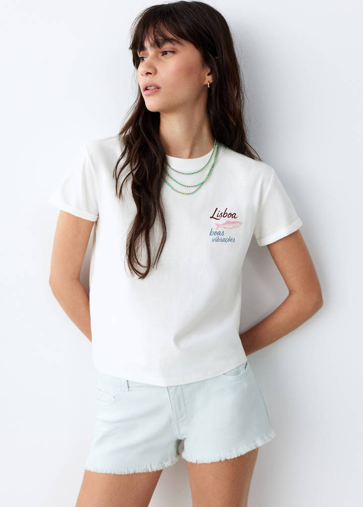 100% хлопок. Прямой крой. Круглый вырез. Короткий рукав. На груди принтованная надпись.