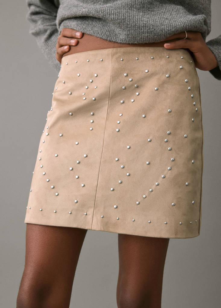 Короткая замшевая юбка с заклепками