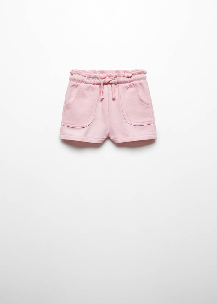 Short design. Paperbag. Elasticated waistband. Two pockets with flaps. Drawstring closure. Summer camp