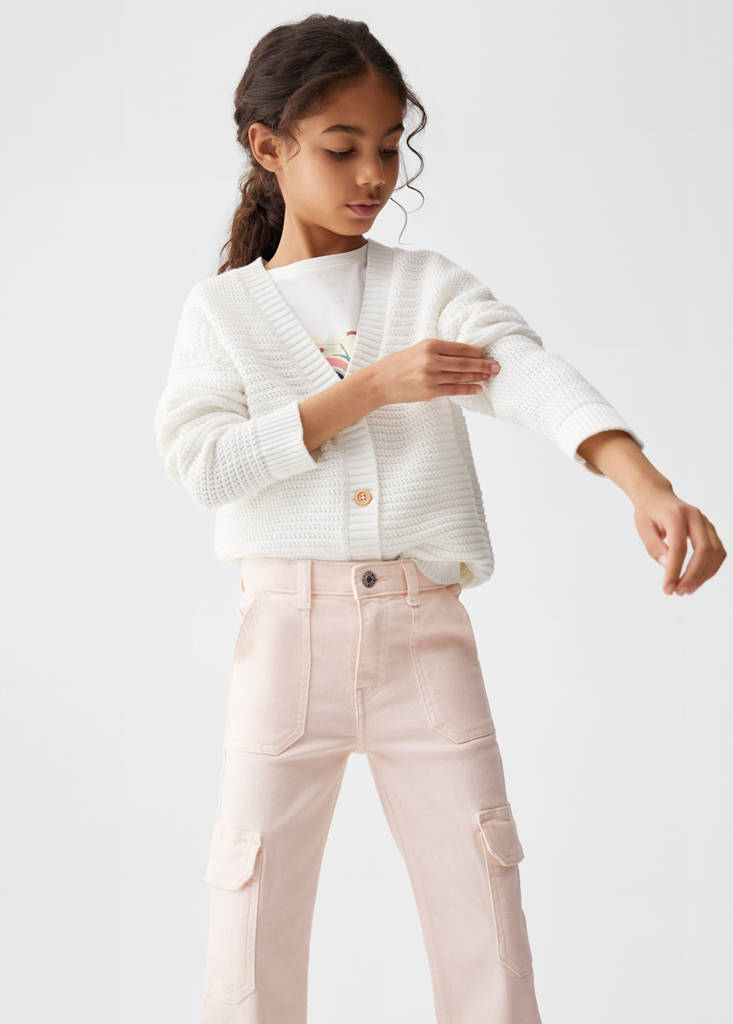 Cotton fabric. Straight design. Long design. Mid-rise. Cargo pocket. Six pockets. Zip and button fastening