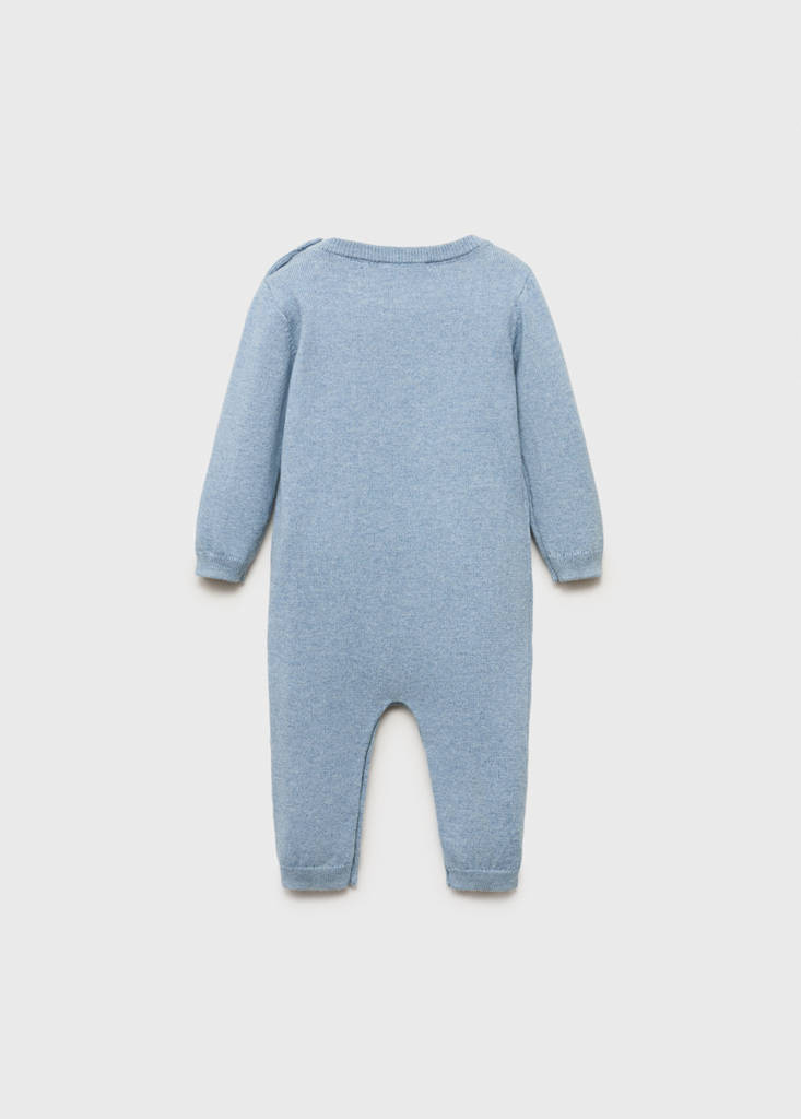Cotton fabric. Knitted fabric. Long design. Straight design. Rounded neck with button fastening. Long sleeves. Two front pockets. Bottom opening with button fastening. Features ribbed details on cuffs and neck