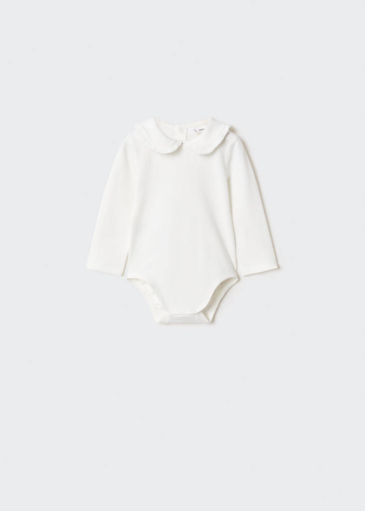 Cotton fabric. Straight design. Babydoll collar. Round neck. Long sleeves. Button up. Press-stud fastening