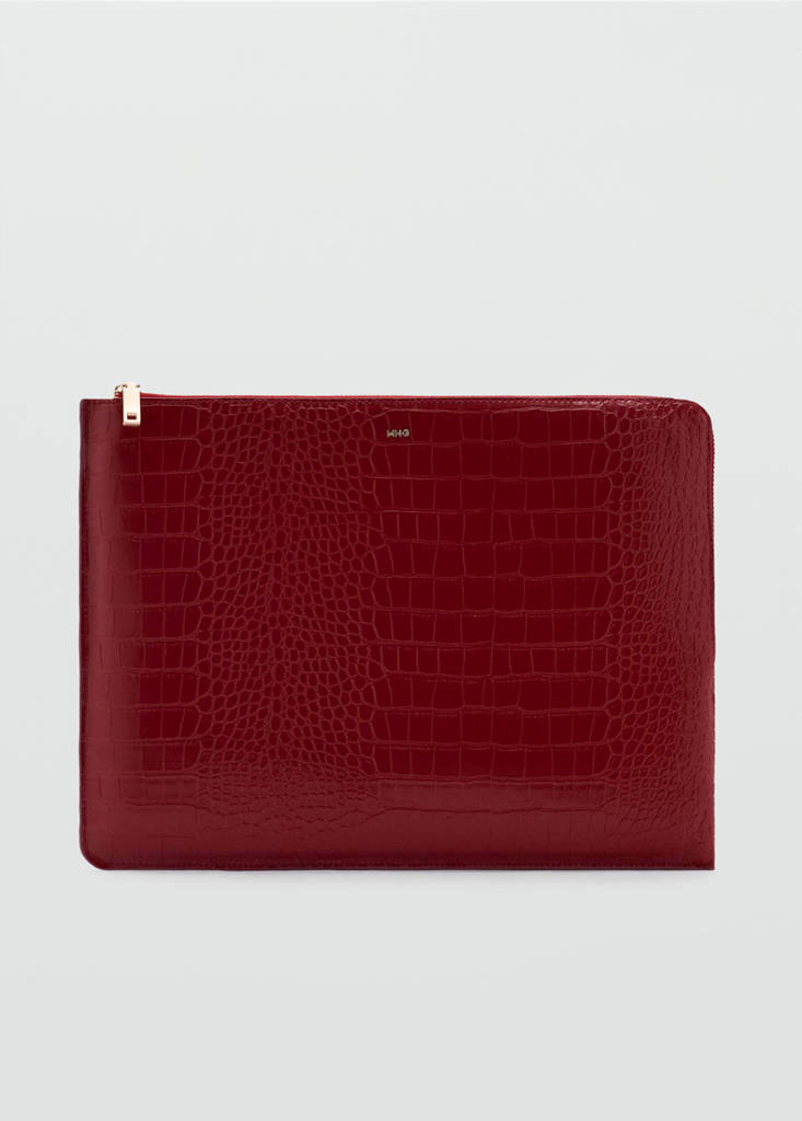 Large. Faux leather. Zip closure. Interior pocket. Debossed logo. Inner lining. Office looks. Size 15 inch. Crocodile effect. Animal print. Crocodile skin. Zip fastening. Inner lining. 36x2x27