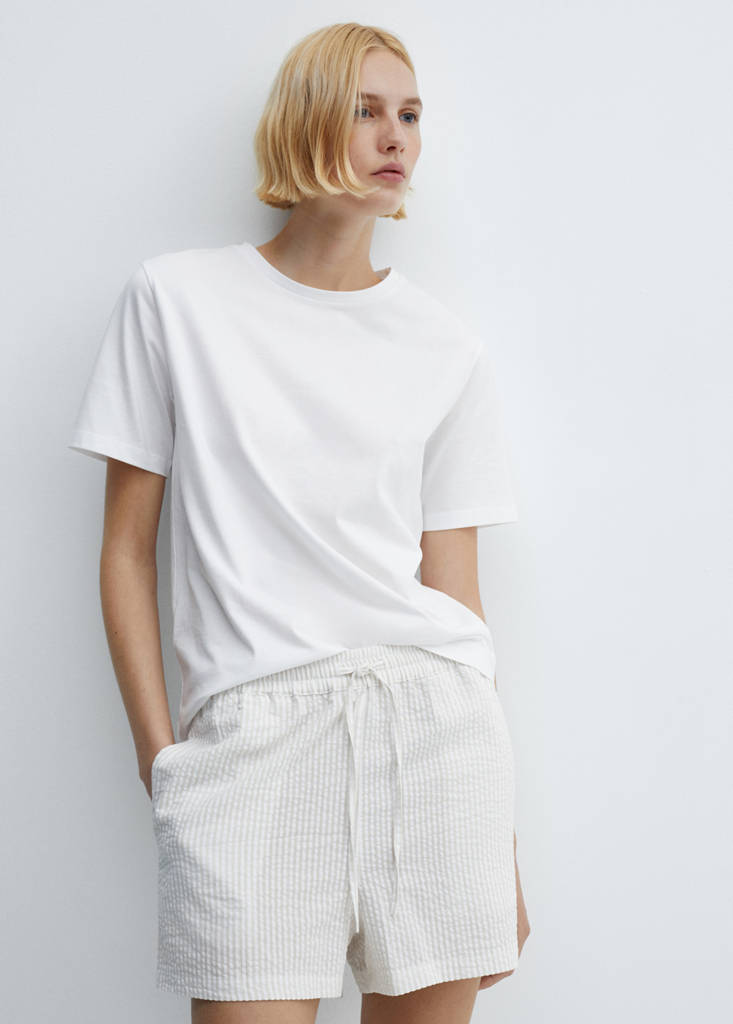 Two-piece striped cotton pyjamasCurrent price [LAK 999,000.00 ]LAK 999,000.00Select a colourBeigeThe model is wearing size S and is 179cm tall.Select your sizeXSNot available. I want it!SNot available. I want it!MNot available. I want it!LNot available. I want it!XLNot available. I want it!DimensionsNotify meAdd to WishlistSee lookFree delivery to storeStraight design. Short design. Striped print. Round neck. Short sleeves. Elastic waist with tie closureDetails, composition and careStore availability
