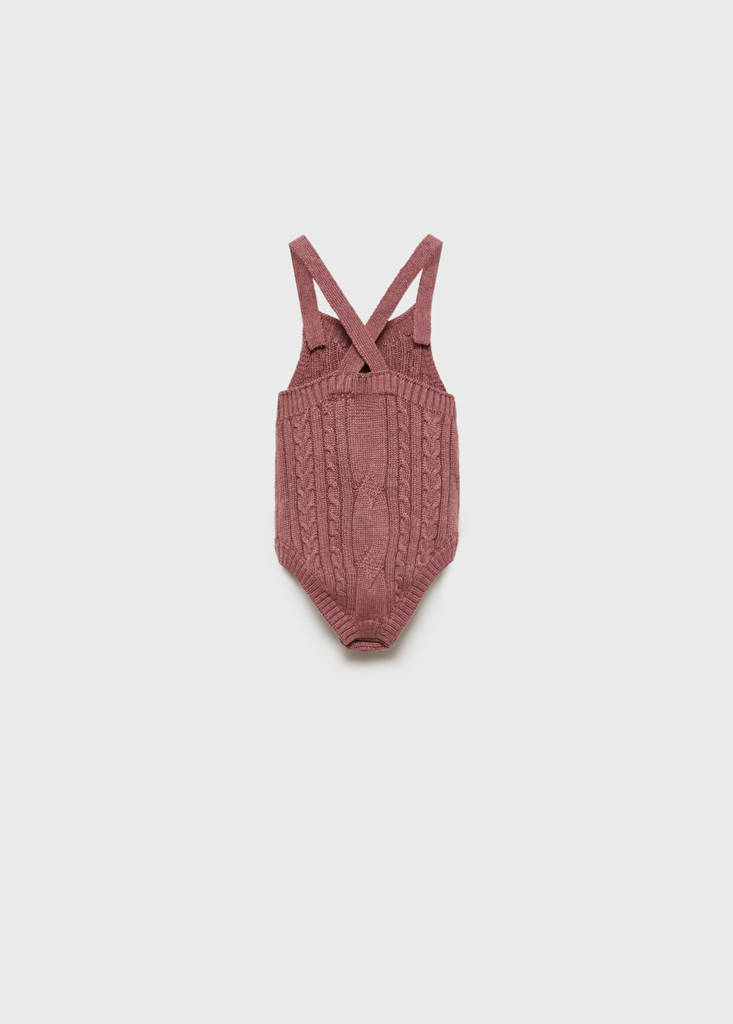 نسيج محبوك. ياقة مربعة. أشرطة بقصة متعارضة. إغلاق بزر. فتحة في الأسفل مع إغلاق بأزرار
