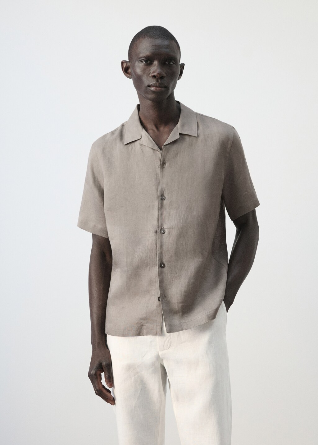قميص بياقة بولينج بنسبة 100% من الكتان