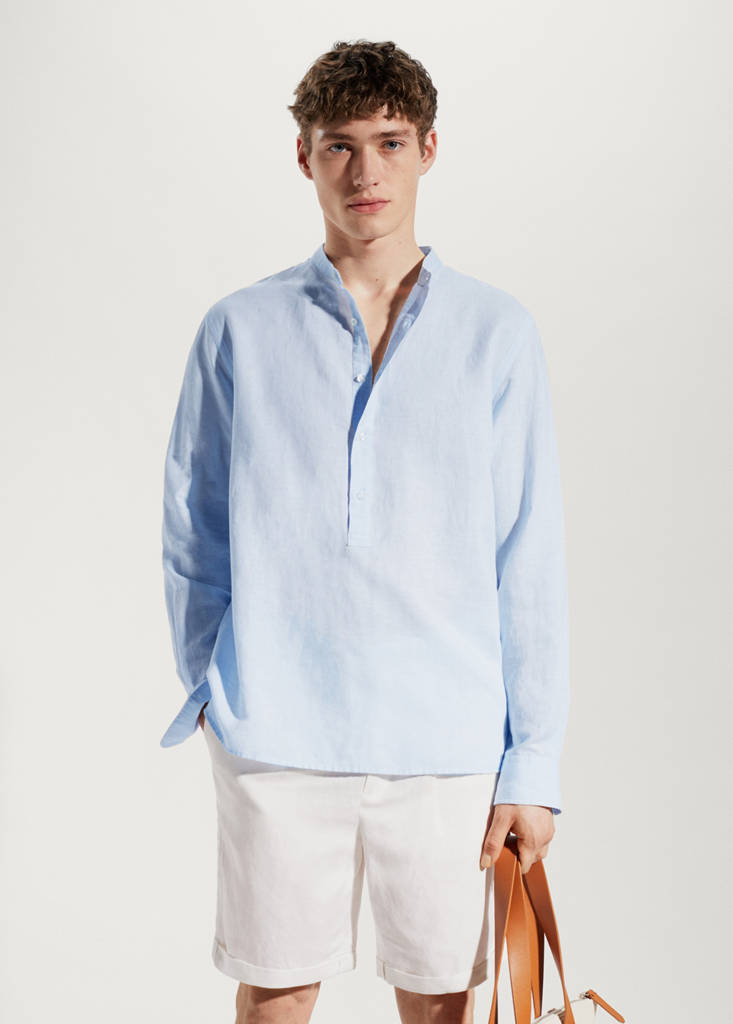 قميص كتان بياقة ماو منتظم