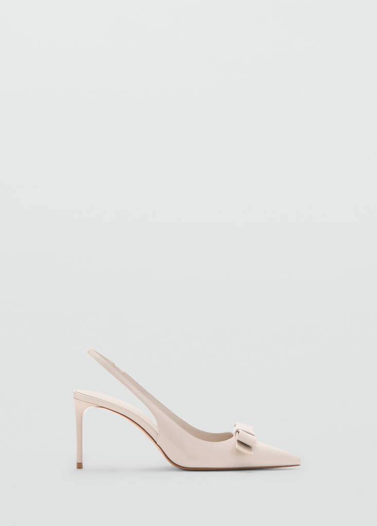 تصميم بمظهر لامع. تصميم مفتوح من الخلف. مدبب. أنشوطة تزيينية. حذاء بكعب عالي رفيع. ارتفاع الكعب 10 سم