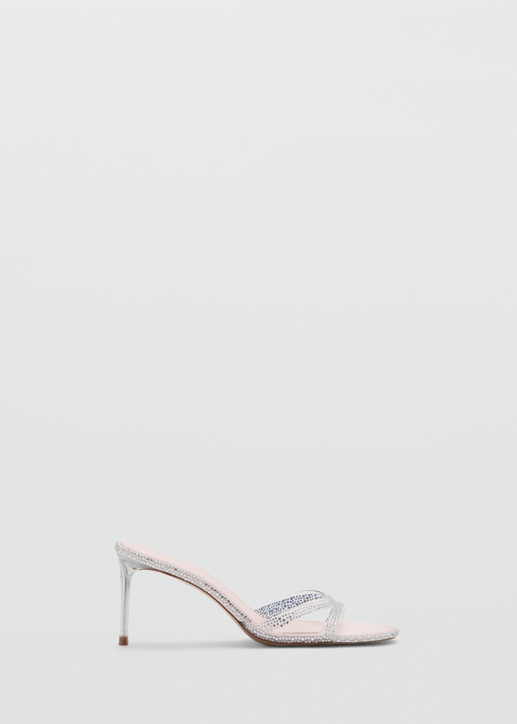 تصميم الخرز. تصميم بأشرطة. تصميم مفتوح من الخلف. مقدمة مفتوحة. حذاء بكعب عالي رفيع. ارتفاع الكعب 10 سم. بدون إغلاق.