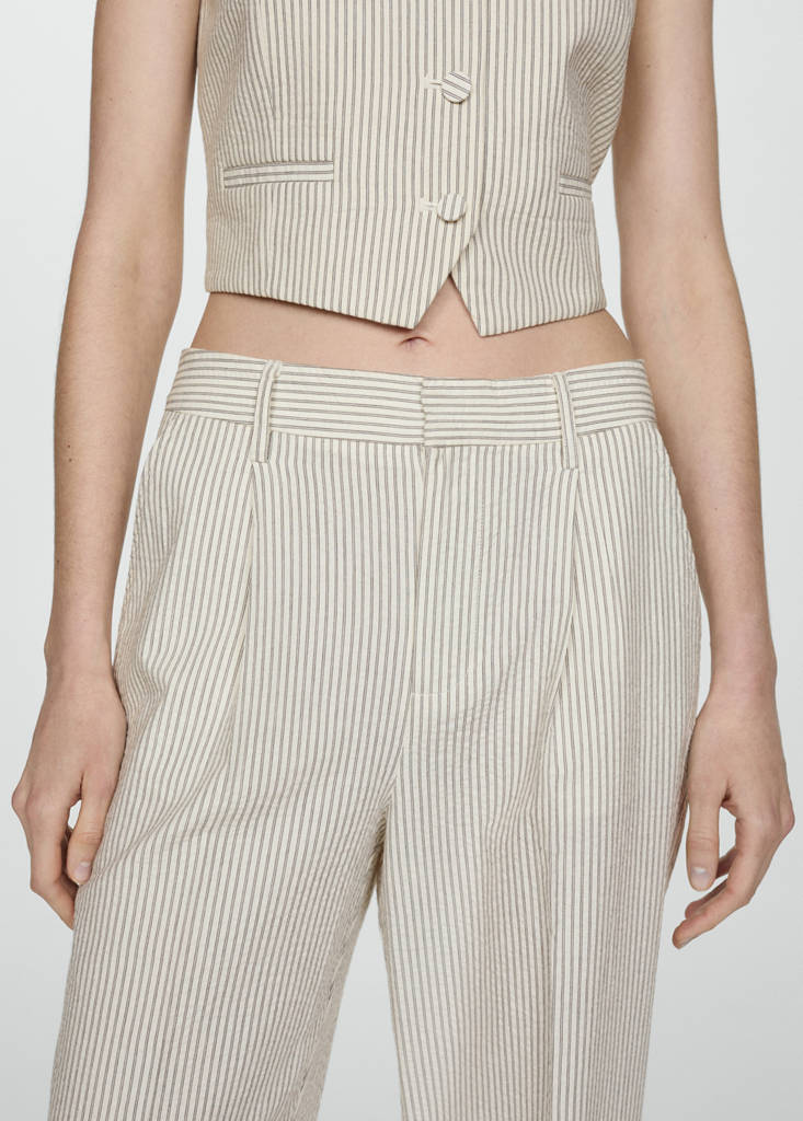 تصميم مستقيم. تصميم طويل. نقشة مخططة. جيبان جانبيان. حلقات حزام. زر مخفي وخطاف وإبزيم بسحاب. إطلالة كاملة. نسيج 100% قطن