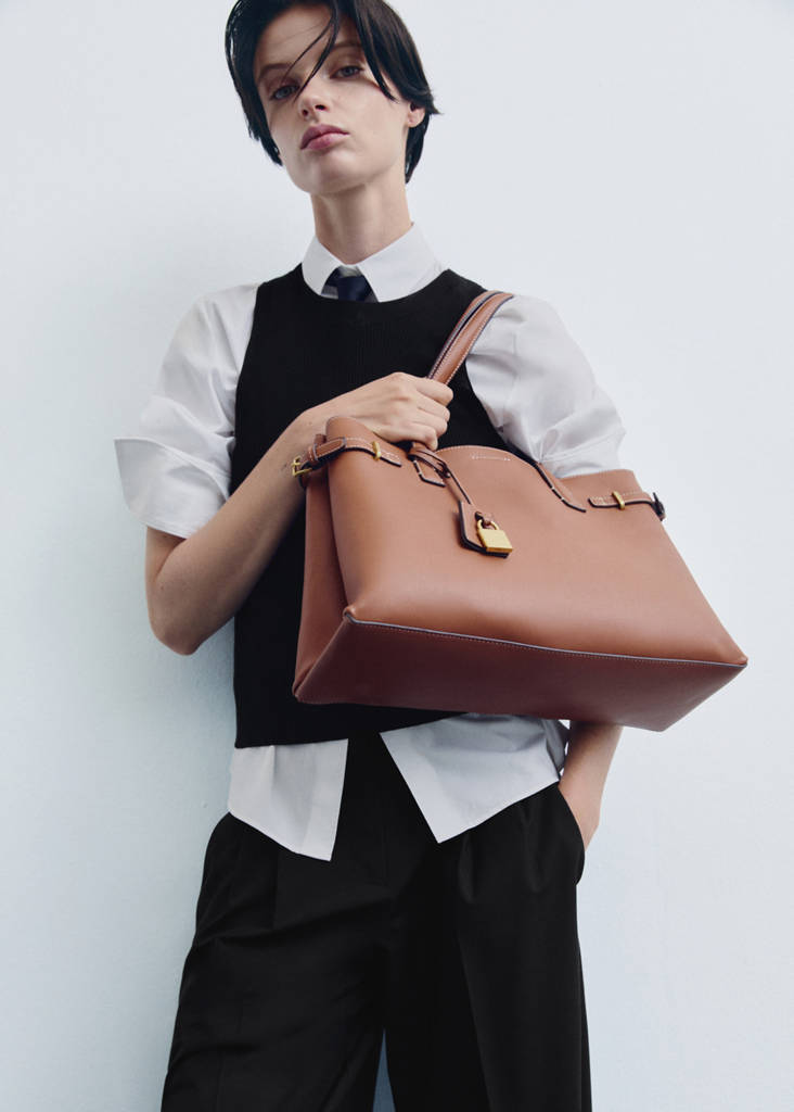 حجم كبير. ستايل شوبير. تفاصيل قفل. مقبض مزدوج. بطانة داخلية