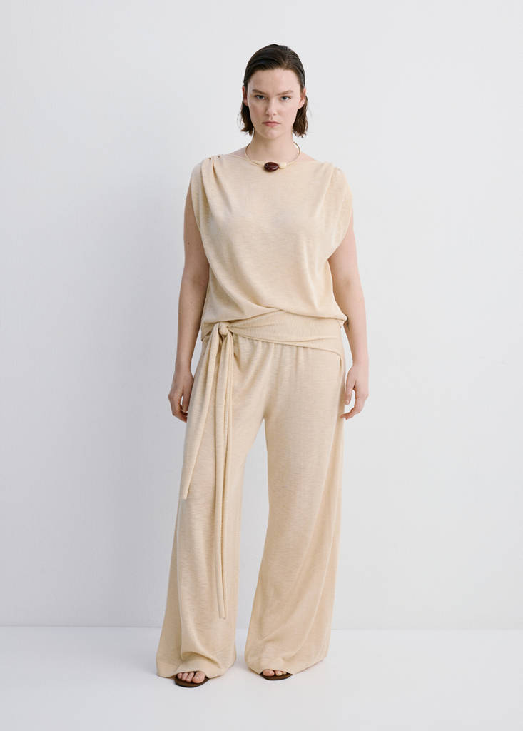 كنزة بأكمام قصيرة محبوكة ناعمة