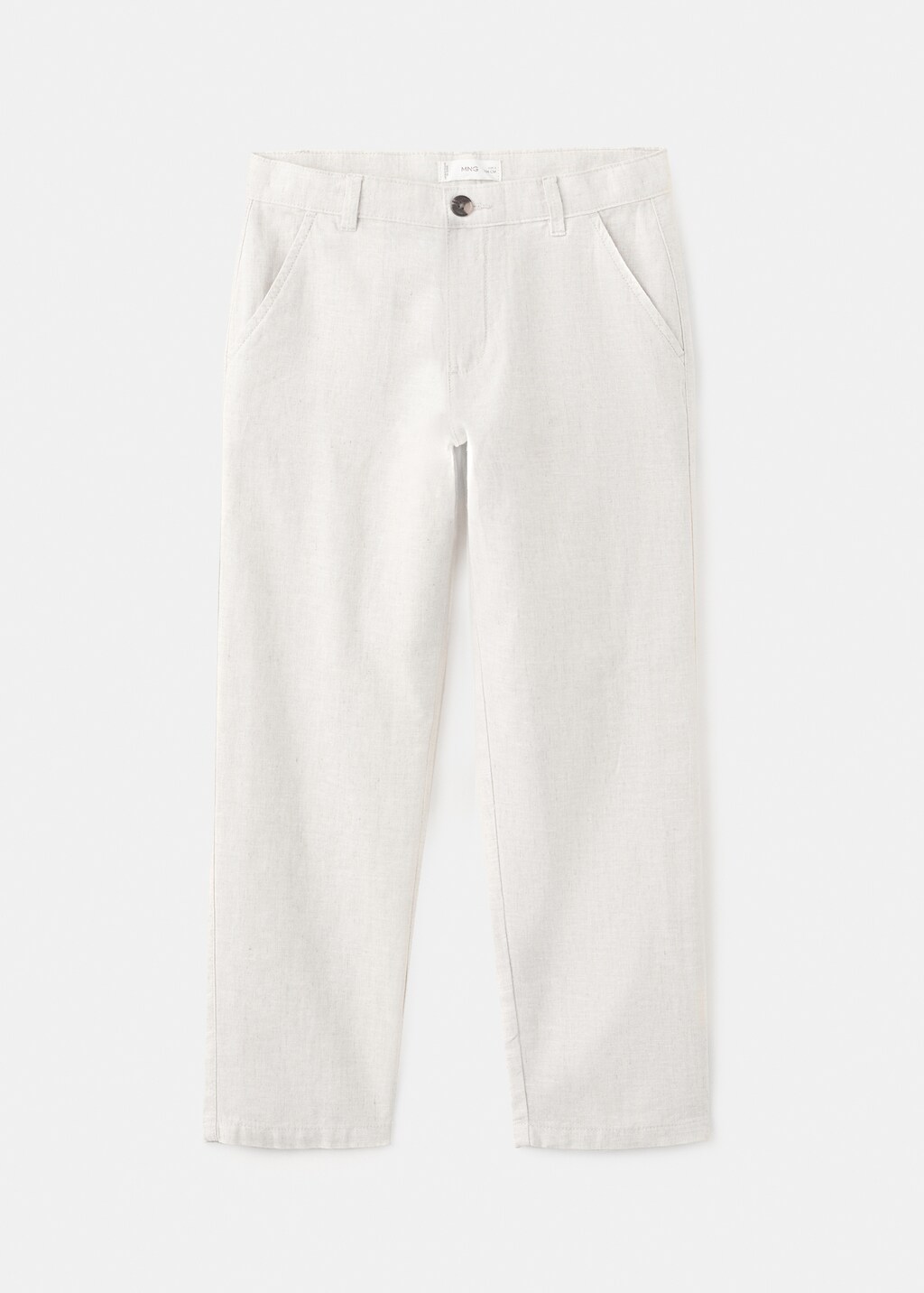 مصنوع من قماش مزيج القطن والكتان، يقدم هذا التصميم المستقيم والطويل الراحة والأناقة. يتضمن حلقات للحزام، جيبين جانبيين، وإغلاق بزر وسحاب.