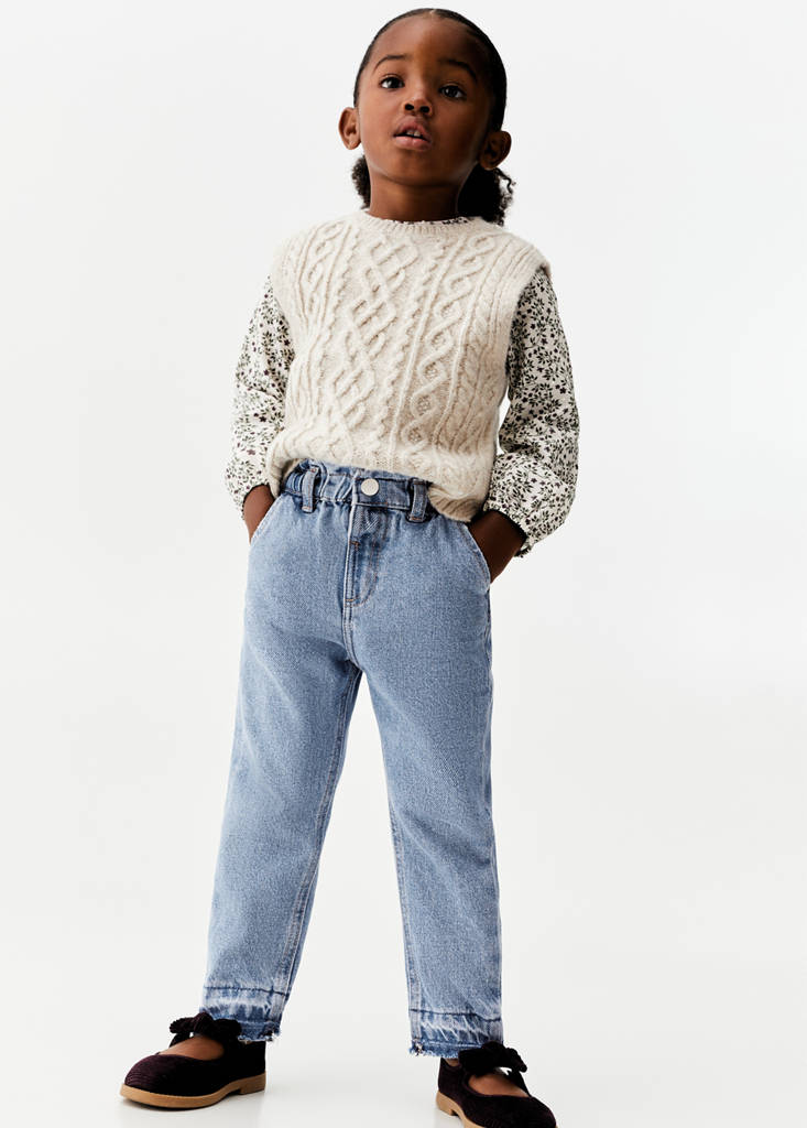 مجموعة الأساسيات, نسيج قطني بطراز دنيم, paperbag, تصميم طويل, تصميم مستقيم, عصابة بشريط مطاطي, زر للديكور, خصر قابل للتمدد, غير مغلق.